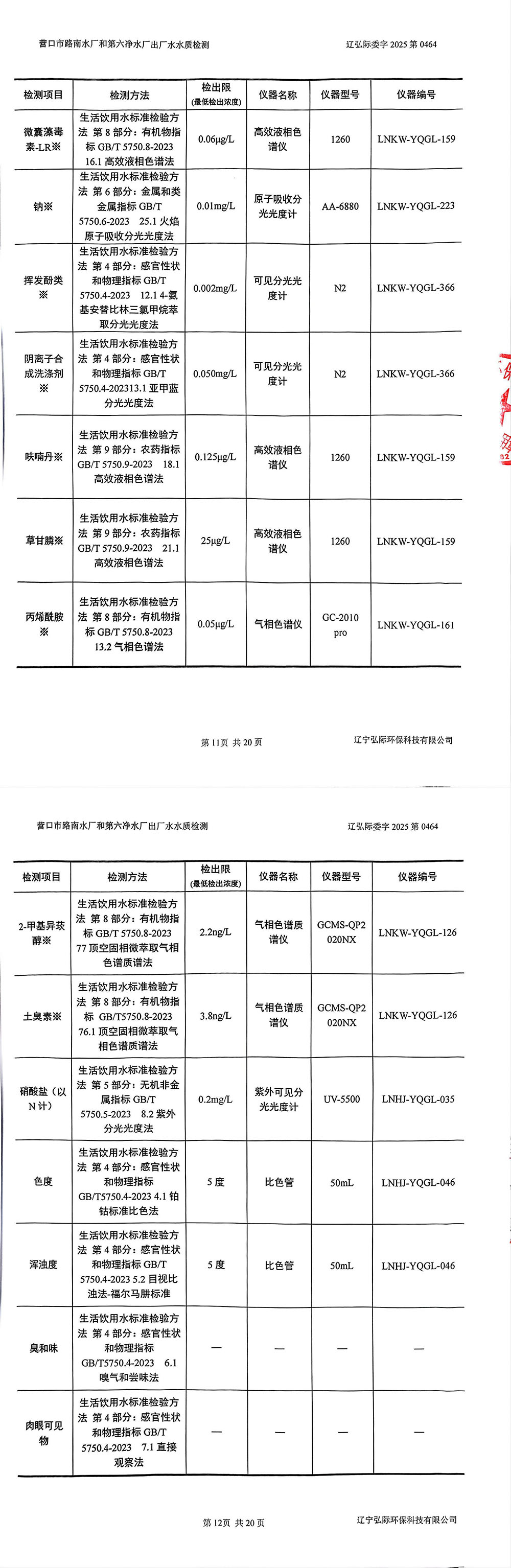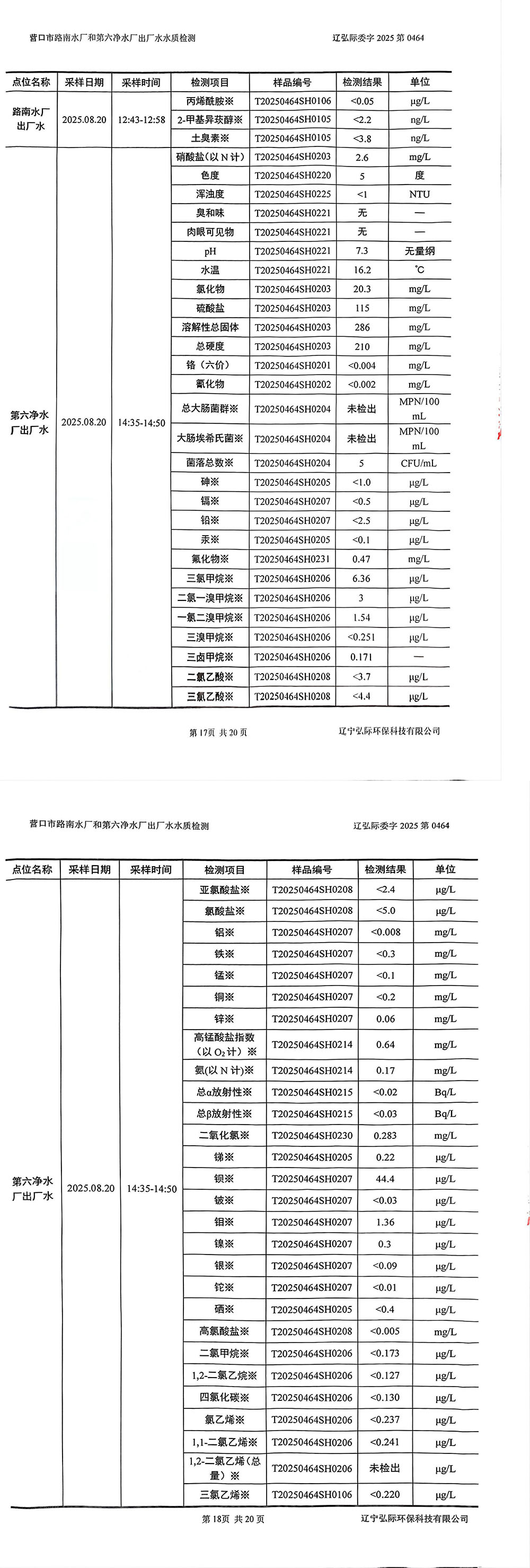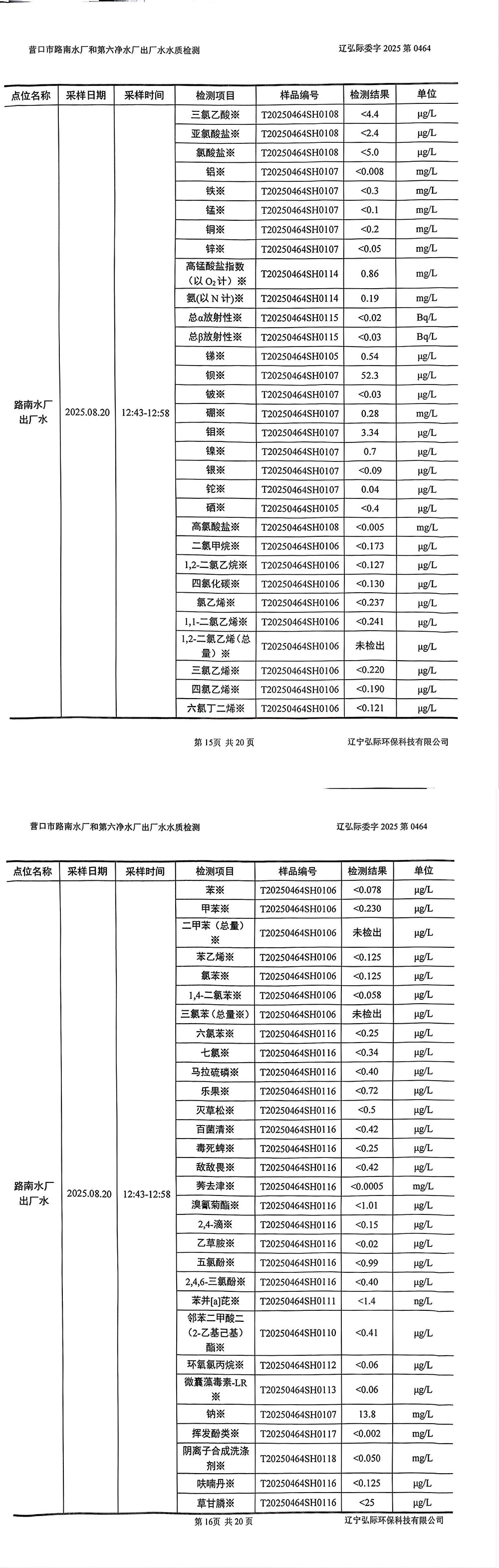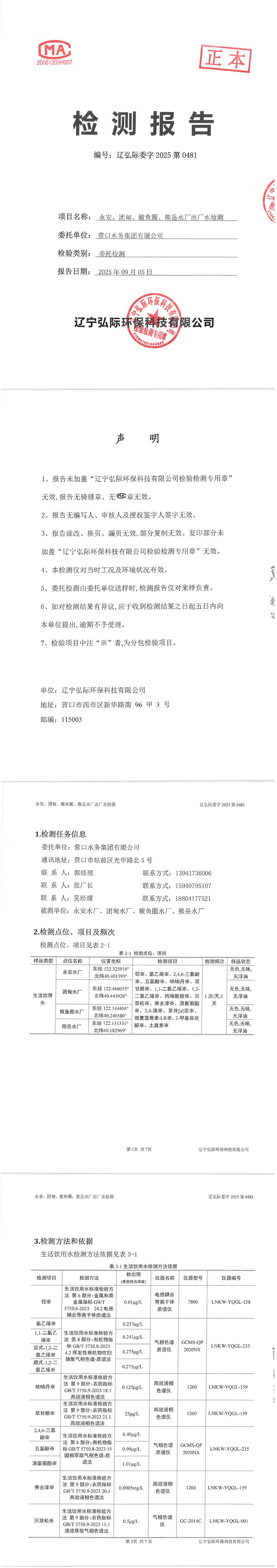 2025年3季度水质公示报告